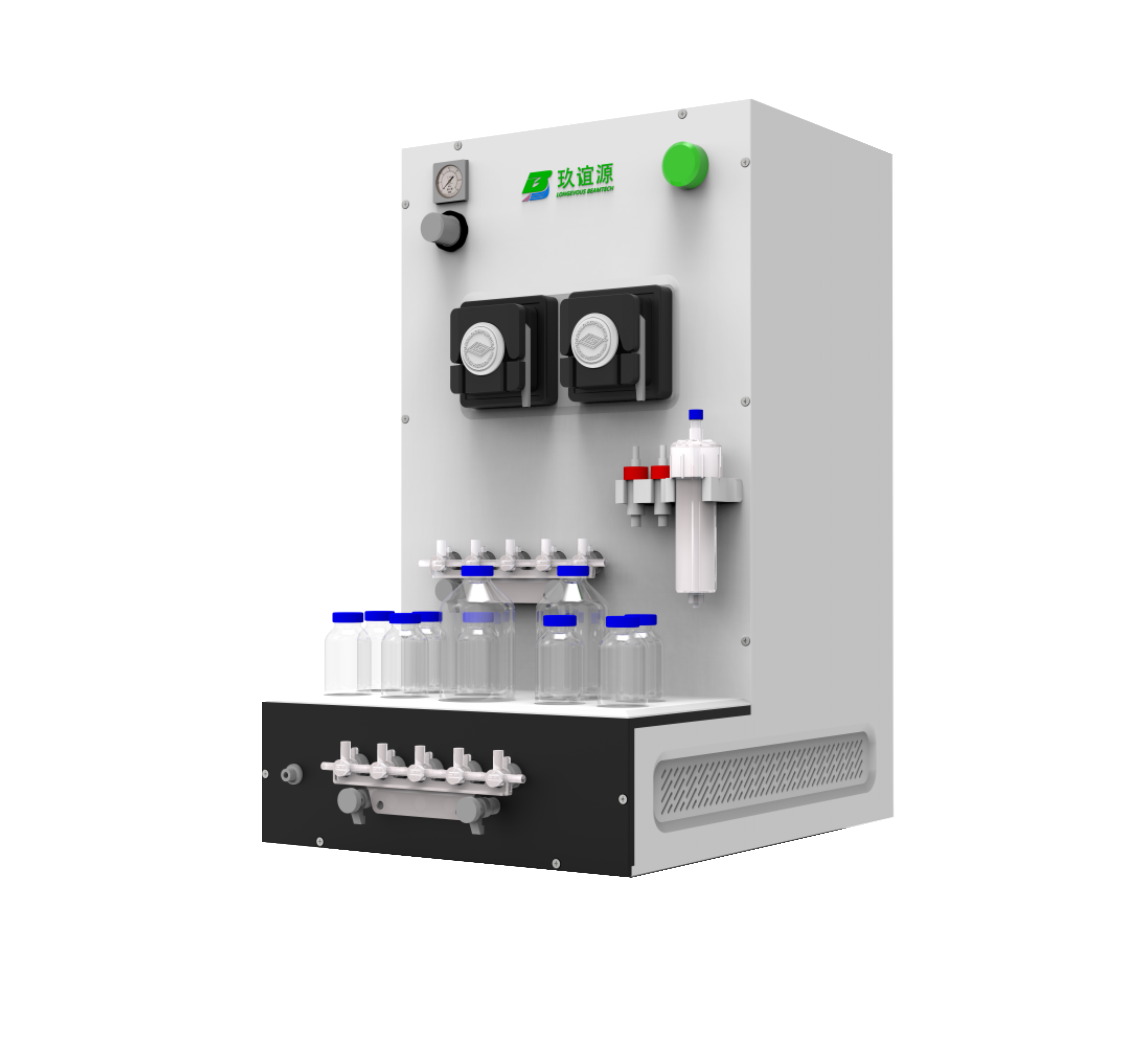 能夠在封閉環(huán)境下自動完成從靶件傳輸輻照到放射性同位素純化的一系列操作,系統(tǒng)自動化程度高,減少了人為操作錯誤,有效避免了放射性污染和操作人員的輻射風(fēng)險,可提升實(shí)驗(yàn)的重復(fù)性和準(zhǔn)確性,同時還具備手動操作模式以應(yīng)對系統(tǒng)自動運(yùn)行時出現(xiàn)的異常情況。